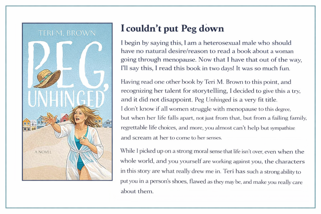 Check out Teri’s new book, Peg Unhinged today: https://www.amazon.com/Peg-Unhinged-Teri-M-Brown-ebook/dp/B0GTML786F/